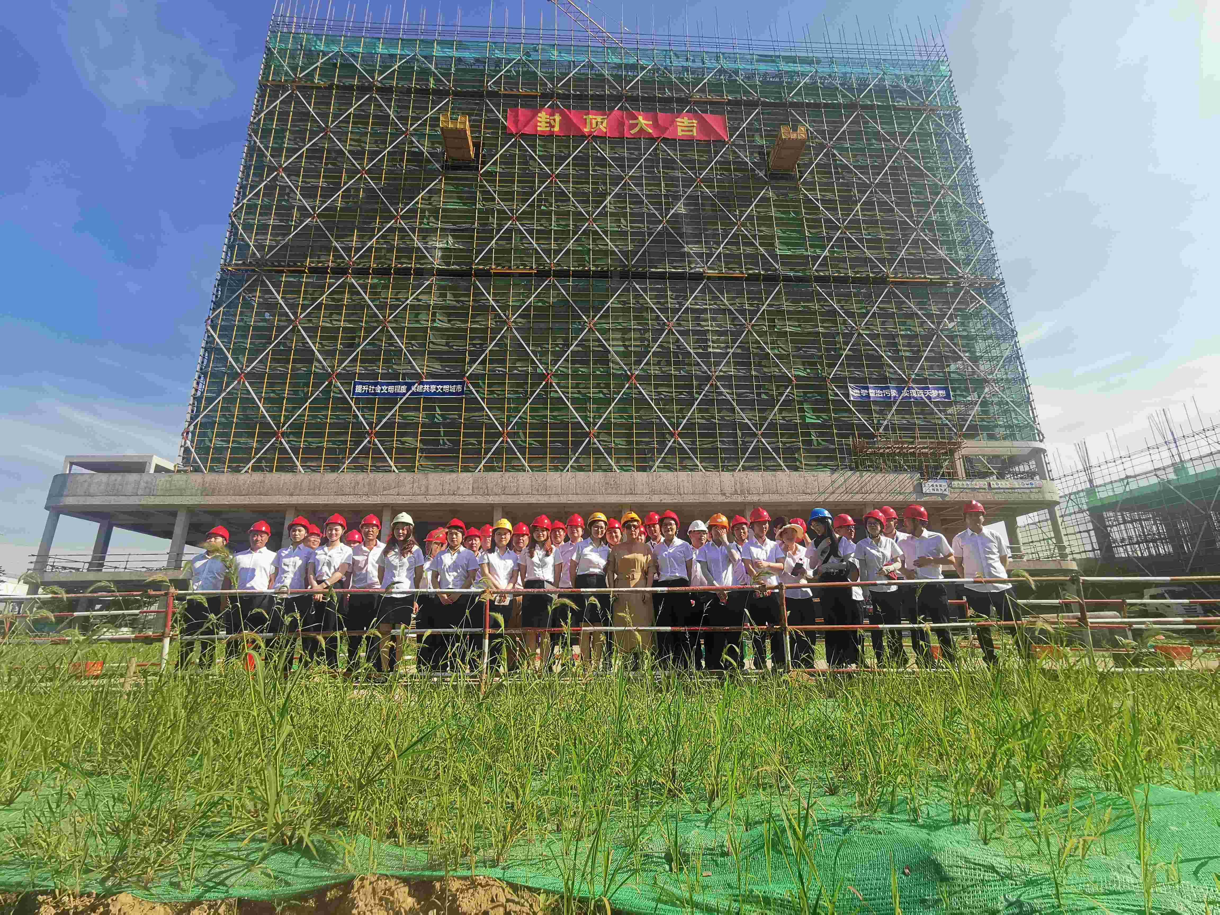 2022年6月27日,J9集团官方网站科技仁和总部办公楼顺利封顶,公司领导一行现场参加了封顶仪式。